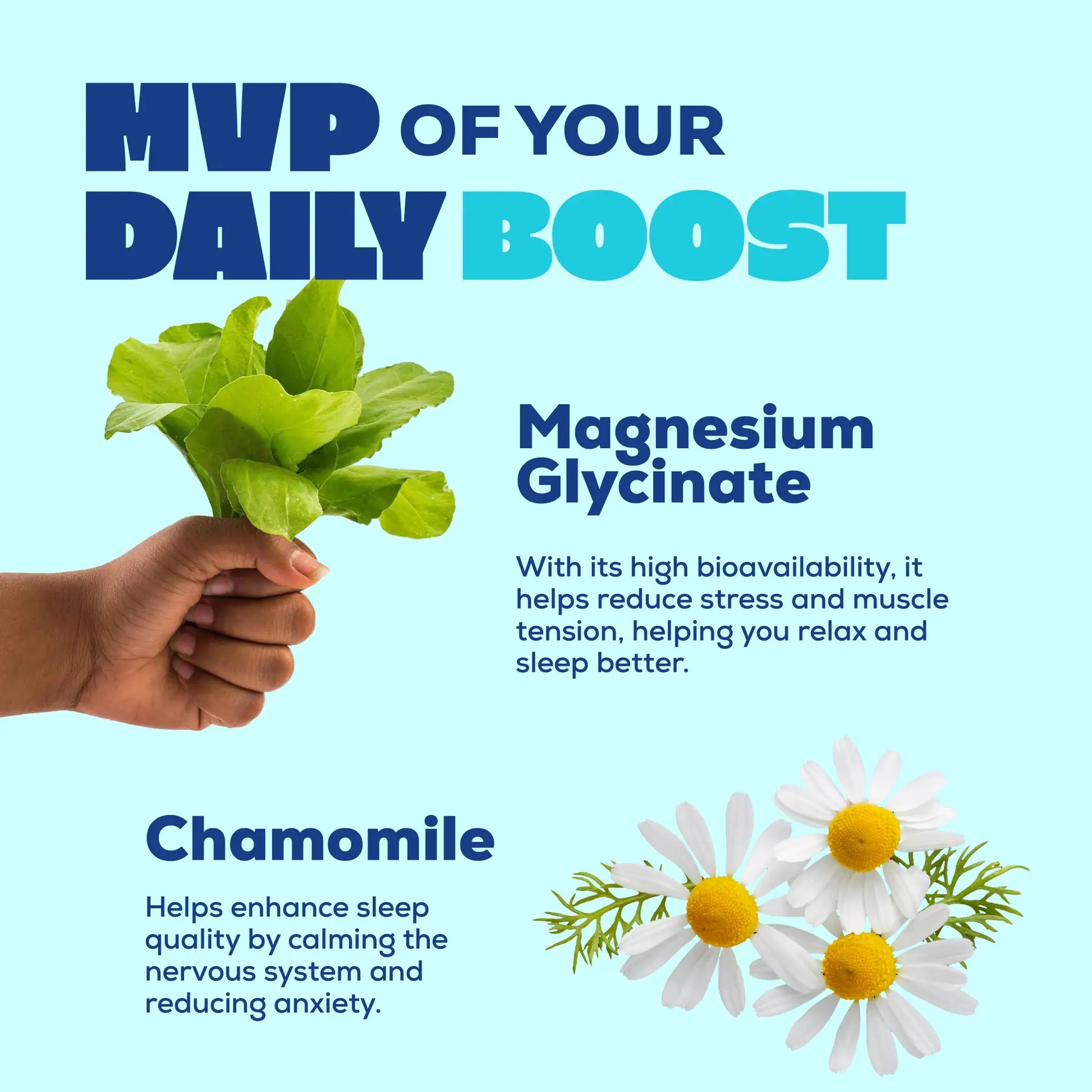 Magnesium glycinate, a key element, helps with sleep by regulating neurotransmitters and calming the nervous system.