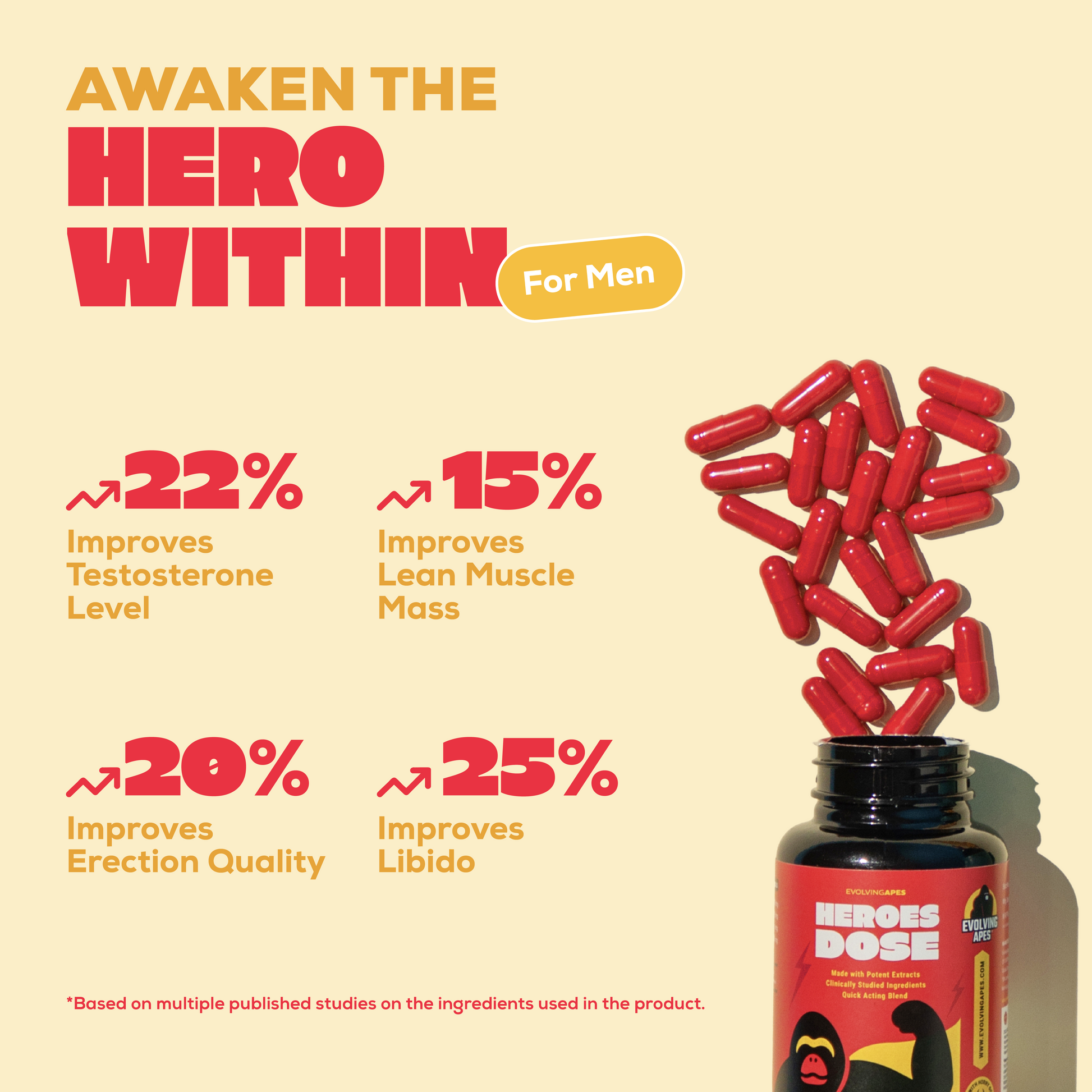 Heroes Dose is your ally in promoting overall well-being and unlocking peak performance. Made with natural ingredients, it significantly improves sexual performance and boosts testosterone levels.