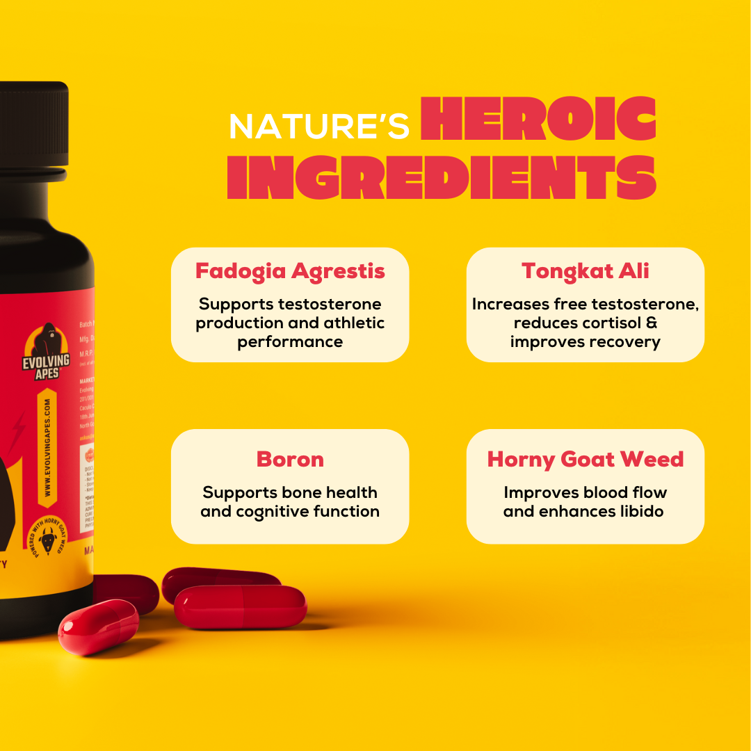 Heroes Dose: Fuels stamina, vitality, and hormone balance to keep your strength and drive firing every day.
