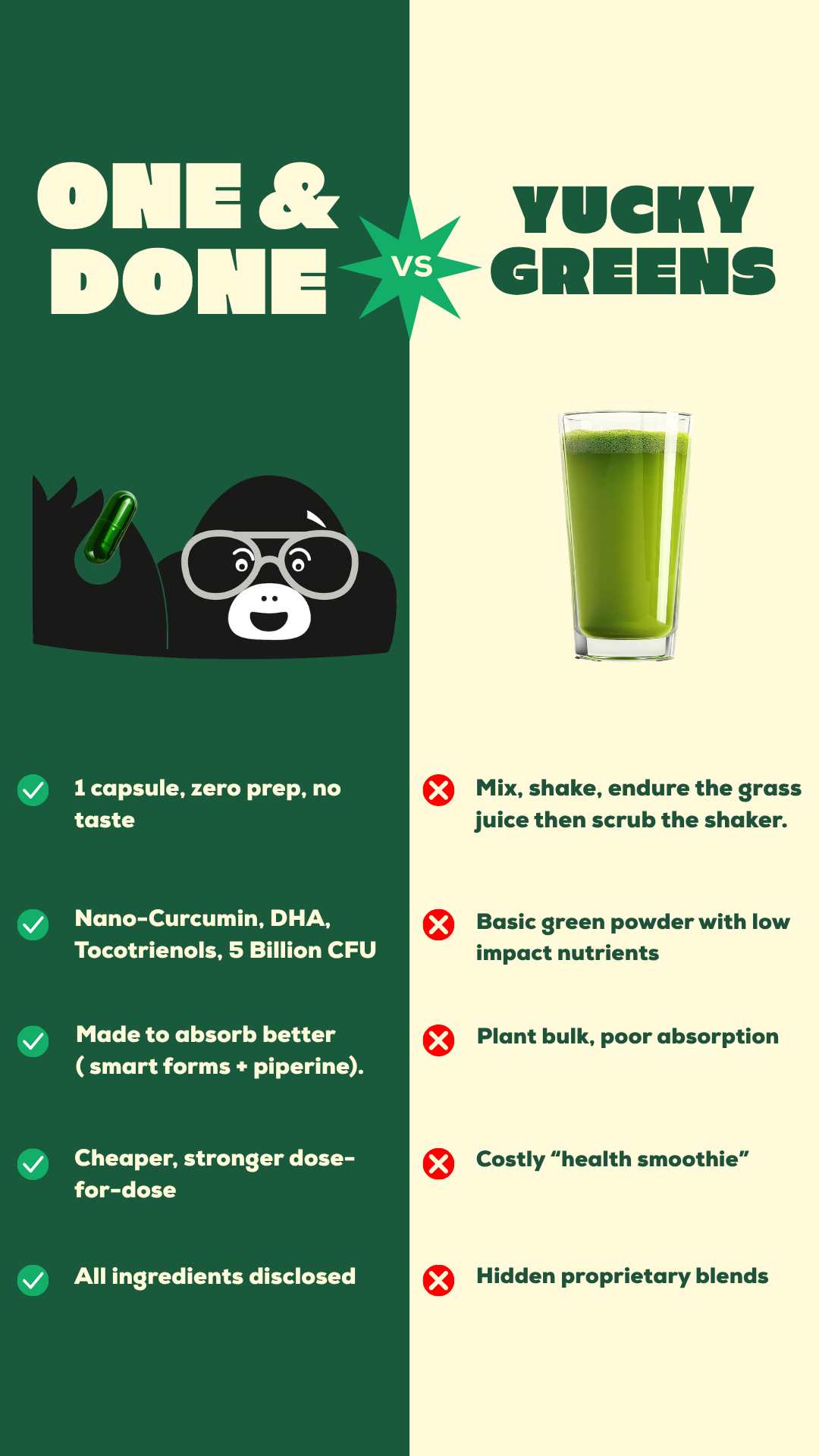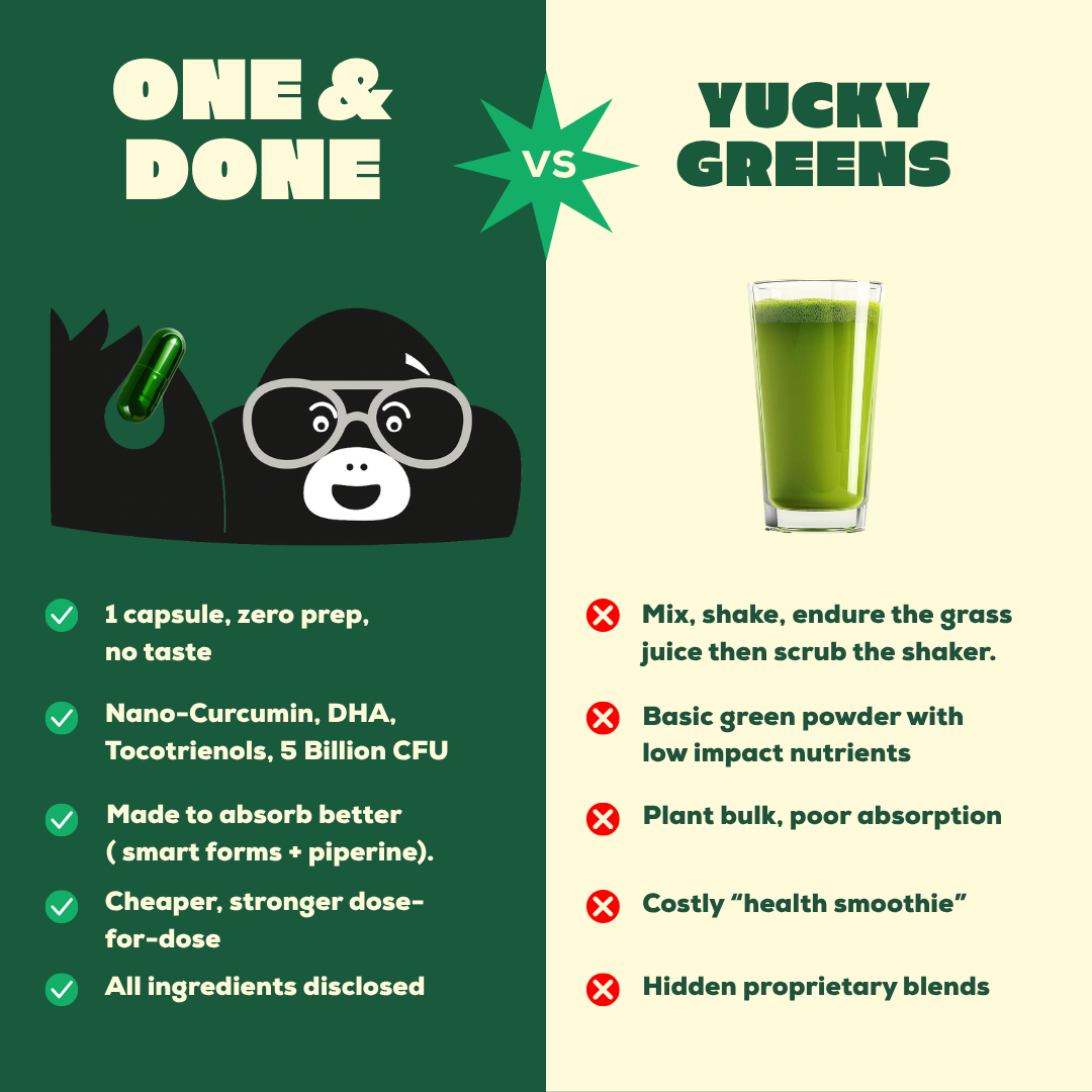 Wellness shouldn't feel like a full-time job. That's why One&Done was created to simplify your routine without cutting corners. Every capsule is about balance, quality, and making wellness something you can actually stick to, day after day. No overthinking, no endless bottles, just one step that keeps you covered. Everything you need. Nothing you don't.
